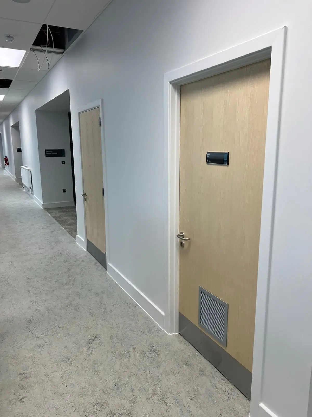 This impressive modern new build school included fire doors throughout, acoustic wall panelling and joinery finishing to a high standard.